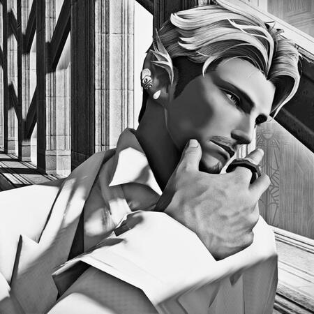 Voice Claim: Ray Panthaki - <Sample>Appearance - Julien's deep, rich complexion is a blend of his fair-skinned father and dark-skinned mother, and one he is heartened to say gives him great pride. His silken, rose-hued locks, oft cut in short styles, are kept perfectly coiffed, and a neatly trimmed beard frames his sharp jawline. Short of ear and long of limb, the Elezen stands among the tallest of his ilk, but any intimidation his stature may impose is quickly offset by his gentle demeanor. His deceptively slim constitution belies a toned physique, as his strenuous handiwork has lent itself well to his corded, vein-crossed forearms. The Elezen's handsome features are marred by an indelible childhood injury, though its origin isn't one he shares with others. Permanently etched on his left cheek is a large, jagged gash, and his stark white eye contributes to a slew of visual impairments.Attire - Julien allows himself to indulge in vanity, investing more time than he'd like to admit in front of his glamour dresser. A keen interest in fashion was nurtured by his parents at a young age, with the tiny Elezen raiding their closet and trying on their garments all at once. An aristocrat in all but name, he enjoys dressing the part of a dapper fellow, even in casual wear. Julien cuts a dashing figure in his preferred finery, with well-tailored ensembles accentuating his svelte frame, and accoutrements such as waistcoats and cufflinks donned on his person. As a matter of personal style, he can be seen adorned in opulent jewelry of his own making - from slender finger to pointed ear.Disposition - Shy to a glaring fault, Julien is awkward in nature - a trait that has hindered him since his early years. He is rarely the one to initiate contact, with hesitancy obliging much of his interactions. Moving around as much as he did made it particularly difficult for the Elezen to forge relationships and keep friends. His uneasiness sometimes supersedes his better judgment, where he can withdraw entirely when gripped by anxiety. Once that rapport is built, however, reticence gives way to excitability, and he reveals an affectionate, effervescent side to a chosen few. Should he secure the trust of another, they will have earned a friend for life. With traces of a soft smile on his carefully chosen words, Julien speaks in dulcet tones - Near Eastern lilt coupled with the dignified cadence of his highborn heritage.
