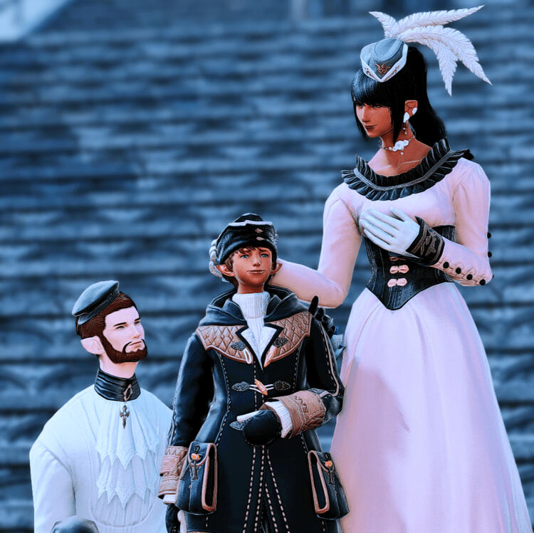 ✧ Urianger AugureltA frisson of intrigue thrummed within Julien when he was first introduced to the man called Urianger Augurelt. Having met at the Studium, he was immediately drawn to the eccentric Elezen, for he saw much of himself in him. Contrary to his initial misgivings, they became fast friends. They were able to bridge any initial awkwardness due to, as Urianger put it, "being Elezen of like age" and having a taste for sweet pastries. In fact, it was Urianger who first extended an offer to study together during a particularly challenging divination lesson. Conversation flowed easily due to their inquisitive natures, and they were effortlessly able to connect in their shared interests. That, and a boisterous Moenbryda now had a bookish lad on each arm to thrust into her mischief, as they half-begrudgingly followed suit.Urianger and Julien roomed together at the Baldesion Annex, though they hardly spent time in their living quarters. Instead, the scholarly pair was commonly sighted knee-deep in research at the Noumenon, or with their schoolwork sprawled out over their table at the Last Stand. They were known to forget to eat when caught in the throes of study, which would always earn them a hearty reprimand from Moenbryda. The two Elezen lent a few homey touches to their dormitory by way of star charts and other celestial decorations, amidst the errant book scattered haphazardly throughout their room.After Urianger became an Archon and eventual Scion of the Seventh Dawn, he and Julien kept in contact as trusted confidants. The two wrote to each other many a time, enthusiastically recalling their days in academia. They'd reunite once Julien unwittingly became a vaunted ally of the Scions in his capacity as a Goldsmith. On the eve and wake of countless skirmishes, Julien would tend to Urianger's Astrologian armaments while also ensuring that his companions' weapons never lost any of their luster. In the years that followed, the pair would remain close thereafter, for an intimate and everlasting friendship had been fostered.✧ Aurorillon Victoir