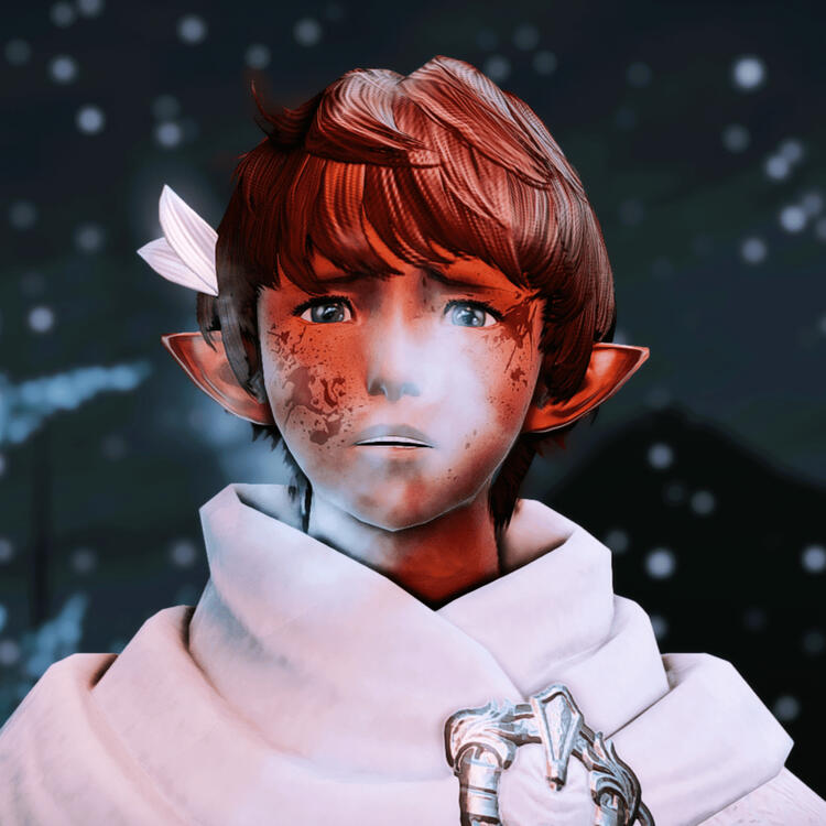 At least, that was the story he told others. Most of it was true, but the finer details of Julien's talents and motivations were woven into a carefully crafted lie. To uphold his sterling veneer, the Elezen would tailor his past to veil those darker areas he'd prefer to forget entirely.As erstwhile nobility, Julien and his family occupied a niche in the Ishgardian hierarchy. They were rejected by both the upper class and lower rungs alike, essentially belonging to neither stratum. This painted an easy target on Julien's back, spurring on relentless bullying from both ends of the social spectrum. Adults generally ignored him, but children, be they highborn or lowborn, were especially brazen. It started off innocuous enough - offhand comments on his ears, or pelted with the errant snowball. Then began the disparaging remarks on his skin color, or being bombarded with chunks of solid ice. Julien would never engage, no matter how much he was provoked. His parents were powerless to stop them, as they were no longer safeguarded by their titles. For how would one punish a child who had everything, or one who had nothing?The boy would continue his studies unabated, turning heads at the Observatorium and Astrologicum. He not only excelled in astromancy far beyond his peers, but also demonstrated a finesse over the art not often seen in one so young. As the Elezen grew older, so did the attacks become more brutal. On the road home, he'd often be accosted and assaulted behind Saint Reymanaud's Cathedral, no less. Following one particularly heated exchange, one street urchin, emboldened by past deeds, used his misguided courage to wrench Julien's star globe out of his trembling hands and strike him cleanly across the face with it. Something in Julien snapped that day.Never before had he used astromancy to harm, but he'd had enough. With one eye rapidly swelling shut and blood trickling down the side of his face, he finally retaliated. The incantations poured forth seemingly of their own volition, guided by rage born of years of untold suffering. In sequence, a spatial confluence to affect the area only around the assailant; Time Dilation, to distort its passage within that plane; at last, Gravity, to inflict several lifetimes of immeasurable pain all in the span of just a few seconds. Julien broke out of his reverie long after the piercing screams had subsided.'Permanently disfigured' was how the chirurgeons put it. The wretch was alive, but barely, and with no quality of life to speak of. In the grand scheme of Ishgard, one less person in the Brume was inconsequential, just as it always had been. Trial by combat was waived, as no one would formally accuse him, and the Holy See had eyes only for heresy amidst the ongoing war. Julien's parents condemned his actions and distanced themselves from him - abject horror overshadowing their usual unconditional support. Ultimately, the only accountability he faced was his own - the staggering shame at what he had done. Yet rumors quickly spread of the disgraced child's deeds, each more grandiose than the last. Before the ensuing chaos could come to a head, the Elezen had arrived at a grim decision: Julien was left with no other recourse but to flee Ishgard.In the intervening years, the Elezen traveled alone, all while attempting to atone for his actions. He cut off communication with his family in Ishgard, believing himself thoroughly irredeemable, and gave Thavnair a wide berth, unsure how his relatives there would receive him. Julien would eventually reach Old Sharlayan, where he resolved to begin anew. Julien plied his trade as a Goldsmith, finding favor amongst the learned populace by way of his astrometers. He also gained admission to the Studium, mindful to coast at an average level to maintain a modest profile. In this northern land, far away from home, Julien would encounter fellow wayward souls set adrift by life's capricious hand. Some would go on to become his dearest of friends, some, his trusted traveling companions besides, and others still, perhaps something more.