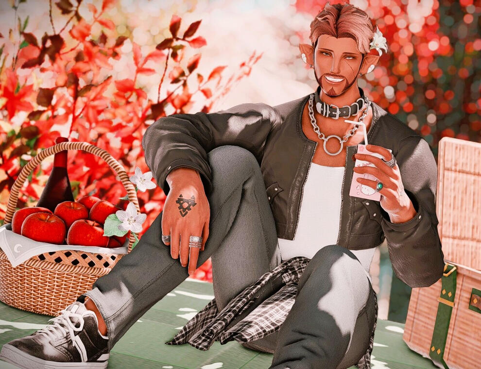 Snacks: Lemon Waffle • Rolanberry Cheesecake • Pixieberry Tea✧ Julien had never had a taste of the privilege afforded by aristocracy, yet all the same, his father instilled the importance of etiquette and how to conduct oneself with utmost decorum. He was instructed in such disciplines pertaining to proper speech, fine dining, and personal hygiene, to name a few. With no suitable atmosphere to apply these teachings, much of it was lost to him over time. Julien couldn't rightfully tell you where to place your dinner fork, but makes up for it with his impeccable manners and debonair impression.✧ Though Julien dons a vast array of earrings and ear clasps with elegance in mind, they also serve to conceal the rosy blush that blossoms over his delicate ears when he's embarrassed or uncertain. Sensitive are they to frigid temperatures as well, for Julien's most cherished accessory is the fluffiest, most dense pair of fleece earmuffs the realm has seen. It bestows unending protection against the cold, but effectively renders him unable to hear. Unnoticed prods or attempts to garner his attention are met with a yelp and a swift jab, in jest.✧ When inspiration strikes, the Elezen can be found hastily drafting his next concept in his always on-hand sketchbooks. Julien's designs loosely borrow from the splendor of Ishgardian architecture and the vibrance of Hannish color palettes. This signature style has earned him a fair degree of eminence in the field. He has since broadened his repertoire to moonlight as a portrait artist, yet his depictions of people can be, politely put, appalling. Otherwise, he enjoys absentmindedly drawing exquisite, intricate patterns, reminiscent of scrollwork or filigrees.✧ As prone to introversion as Julien may be, writing letters strikes the perfect balance with the desire to socialize and doing so at his own pace. Quite skilled in the art of correspondence, he pens his letters with aureate diction in willowy cursive for formal affairs. His more familiar recipients, on the other hand, are presented with handwriting that can only be described as 'cute', punctuated with numerous exclamations and adorable scribbles of him and his friends. Occasionally, he'll enclose a small gift, such as a souvenir from his travels, or a personalized, handmade curio.